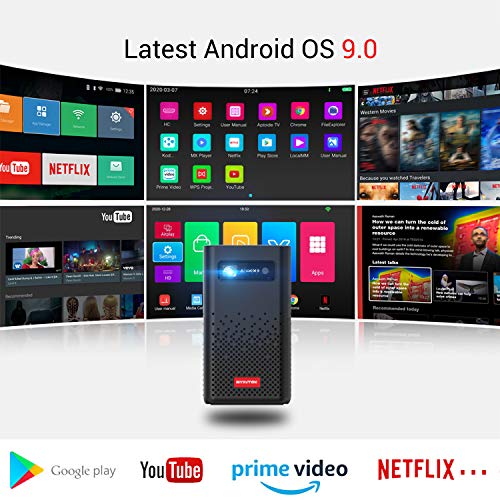 Specification: BYINTEK P20 draagbare mini-projector, Android, WiFi, LED, DLP Pico videoprojector met oplaadbare batterij, ondersteunt…