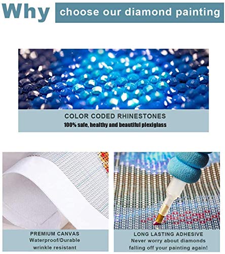 【High-Resolution Canvas】Hoge helderheid afdrukken oliedoek is waterdicht en heeft een gelijkmatige textuur. De doe-het-zelf 5D diamant-kunstset zelf heeft een kleverige achtergrond die de edelstenen vasthouden, om het diamantbeeld stabieler te houden, zodat je het beeld gemakkelijk kunt voltooien.
