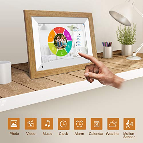 WiFi digitale fotolijsten, YENOCK 10.1 “touchscreen met bewegingssensor 1280 * 800 ingebouwde 16 GB opslagportret en landschap Instant foto en video via app/Facebook/Twitter/e-mail