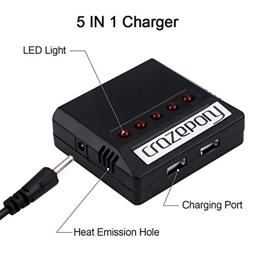 What You Got: 5 stuks batterijen (JST), 1 set 5-poorts oplader, 5 stuks adapterkabels, 1 stuks usb-kabel, kan 5 batterijen tegelijk opladen