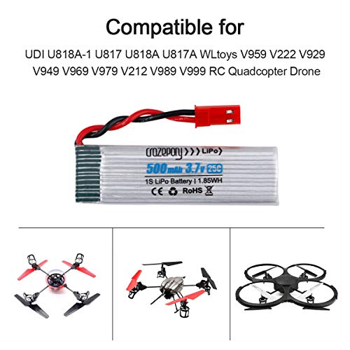 Specification: 1S 3.7V 500mAh Lipo-batterij voor UDI U818A-1 U817 U818A U817A WLtoys V959 V222 V929 V949 V969 V979 V212 V989 V999 RC…