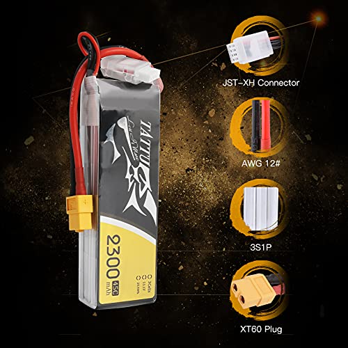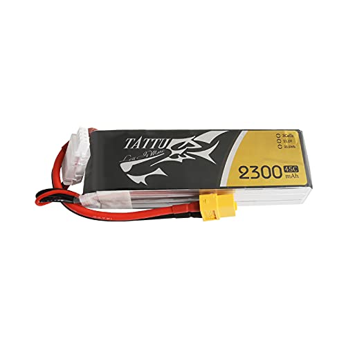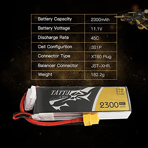 Tattu 2300mAh 11.1V 45C 3S1P Lipo Akku Pack mit XT60 Stecker für UAV Drones FPV Racing Quadcopters Flugzeug wie Blackout…