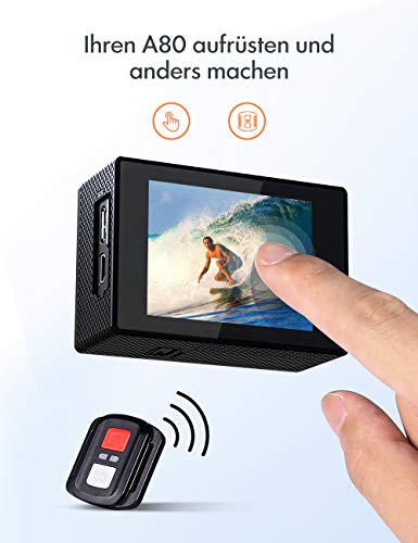 4K/20MP actiecamera A80, maakt het mogelijk om je eigen directeur en fotograaf te zijn, eenvoudig belangrijke momenten van het leven vast te leggen in ultra HD. Het wordt ook geleverd met een verscheidenheid aan specificaties van de hoogwaardige schiettechniek, ook zeer voordelig voor je outdoor-sportervaring, waardoor het tot een goede keuze is voor je toekomstige sportieve actiecamera.