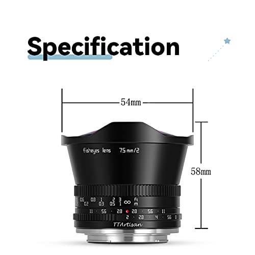 Specification: TTArtisan 7,5 mm F2.0 lens vergroting MF-cameralens compatibel met E-mount camera’s A5000 A5100 A6100 A6300 A6400 A6500…